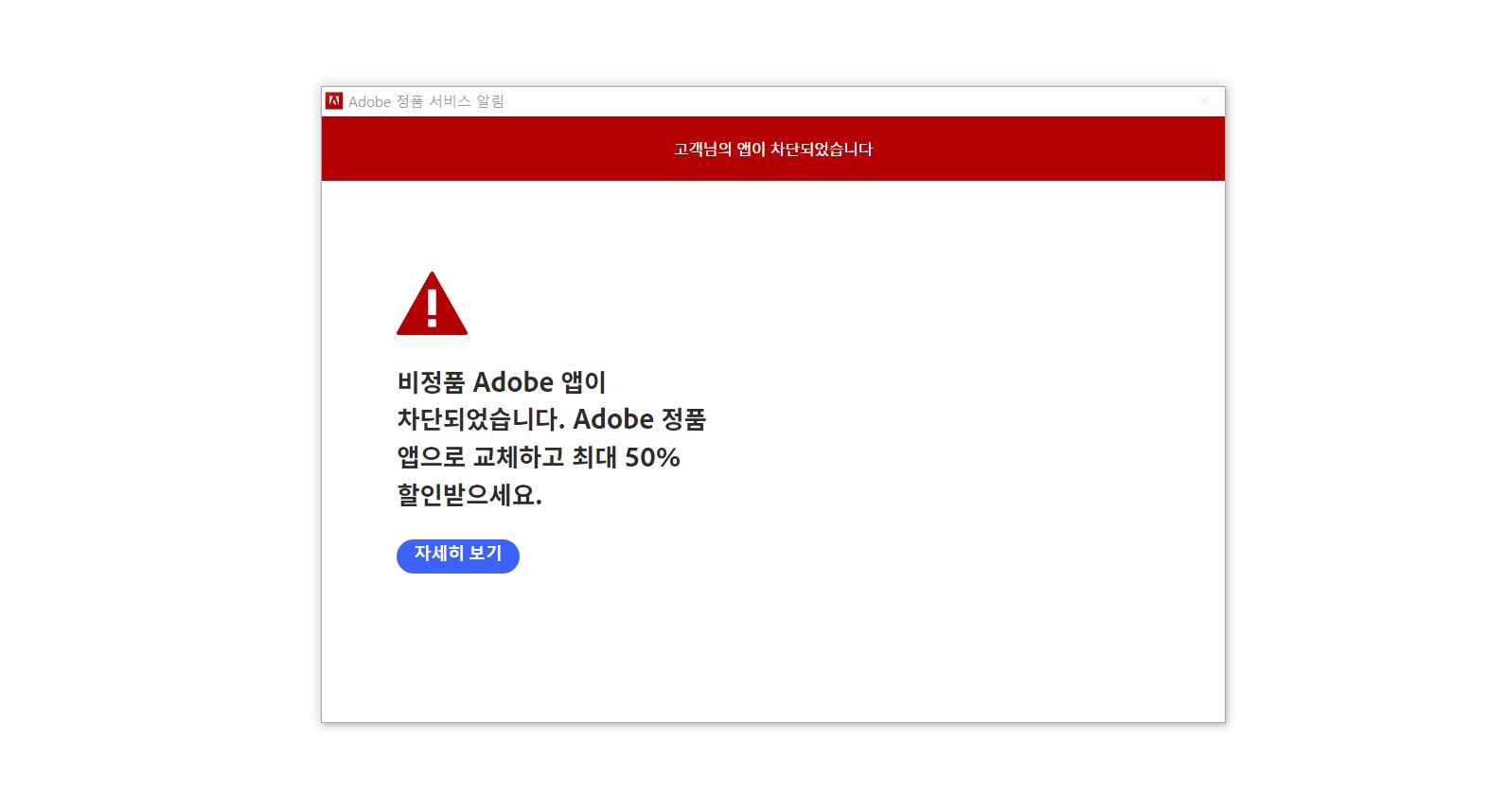 ▶ 어도비 비정품 알림 없애는 방법(비정품 Adobe 앱이 차단되었습니다)